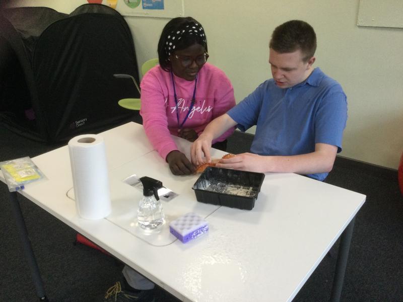 What a super week in the Compass Centre! Pupils have continued their Literacy work with extension tasks to form descriptive sentence and try follow photo schedules to complete tasks without adult verbal instructions- peace and quiet for the pupils ha ha! In Numeracy pupils have been applying their money skills both on site and in the community, plus practicing applying their weight and measure skills. We have applied these skills to then create bathbombs in Functional Skills lessons and create valentines chocolates in Enterprise sessions because we are now experts at measuring in grams! For Art it was our last week to explore a different textile decoration method, this week we explored embellishment! Next week we will be choosing our favourite method to decorate some valentines heart to give to the people we love- our families.