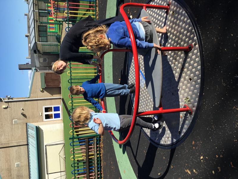 The children practised tolerating others in their space and engaged in parallel play on the roundabout, trampoline and seesaw—developing early social awareness and interaction skills.