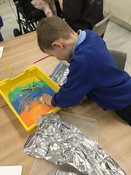 The children had a fantastic time making firework pictures using paint, glitter and colourful pipe cleaners. Everyone enjoyed choosing bright colours and exploring different ways to make 'explosions' of paint on the page.