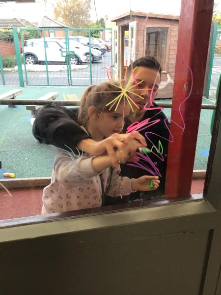 To finish our week of learning the children used chalk pens to decorate our classroom windows with colourful firework designs. They created bright bursts, swirls and sparkles, turning our classroom into a mini firework show for everyone to see from outside.