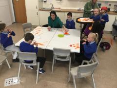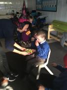 It wouldn’t be Halloween without pumpkins, so some of us enjoyed scooping out the squishy insides, (what a great sensory experience), while others chose to decorate with paint and glitter. Our class has loved singing along to Halloween themed songs too, some favourites included 5 Little Ghosts, and 5 Wicked Witches.