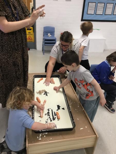 Our Christmas‑themed messy tuff trays have offered plenty of opportunities for sensory exploration, and it’s been great to see the children engaging with the different textures and materials.