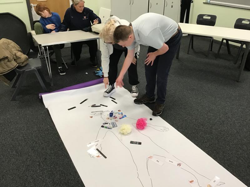 Building on this, they’ve been learning about personal care by matching the correct items to the relevant body parts. For example, the toothbrush, toothpaste, and mouthwash were all linked to the mouth and teeth. The final part of the activity focused on understanding shaving, and we had lots of fun exploring and playing with shaving foam!