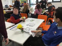 This was also a great time to engage our more sensory learners as it was great for them to feel and smell all the different kinds of flowers. To make their flower arrangements, the students had to prepare all the flowers, such as cutting them to size, choosing colours that compliment each other, preparing the cups, ensuring there was enough water and plant food for their arrangements to thrive.