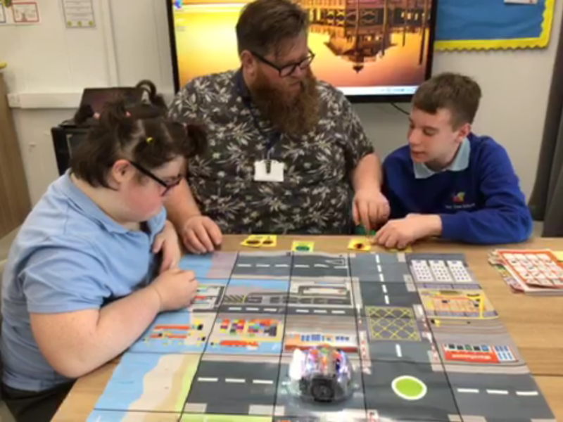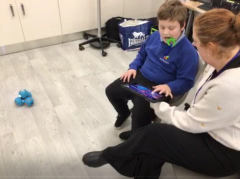 Some pupils have been tinkering with the Dash robot and programming him to follow a specific path on the classroom floor.