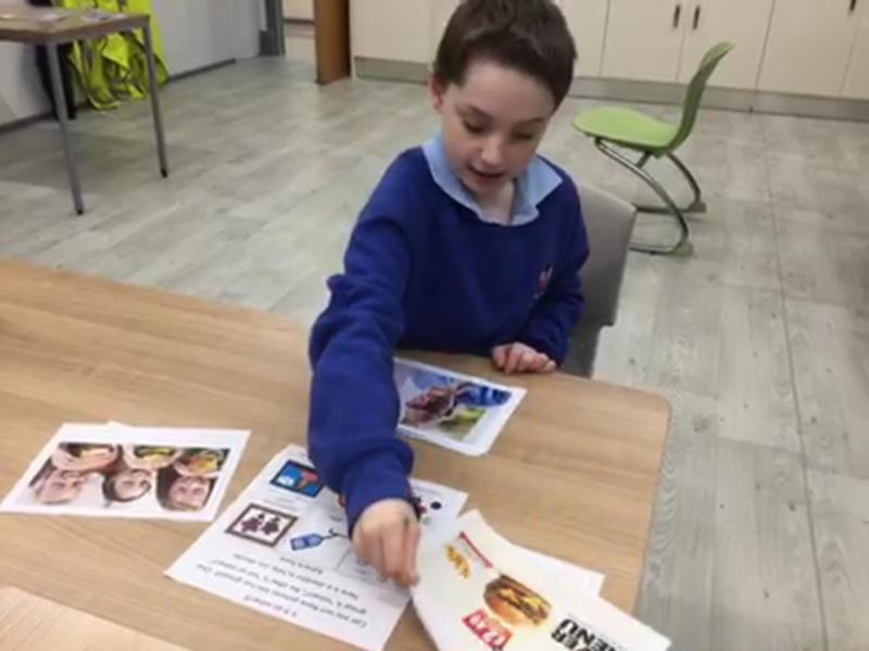 Some pupils were deciding if a selection of photographs were adverts for companies or just pictures of food. It did get quite tricky sometimes because there were lots of people smiling and having fun in the pictures.