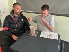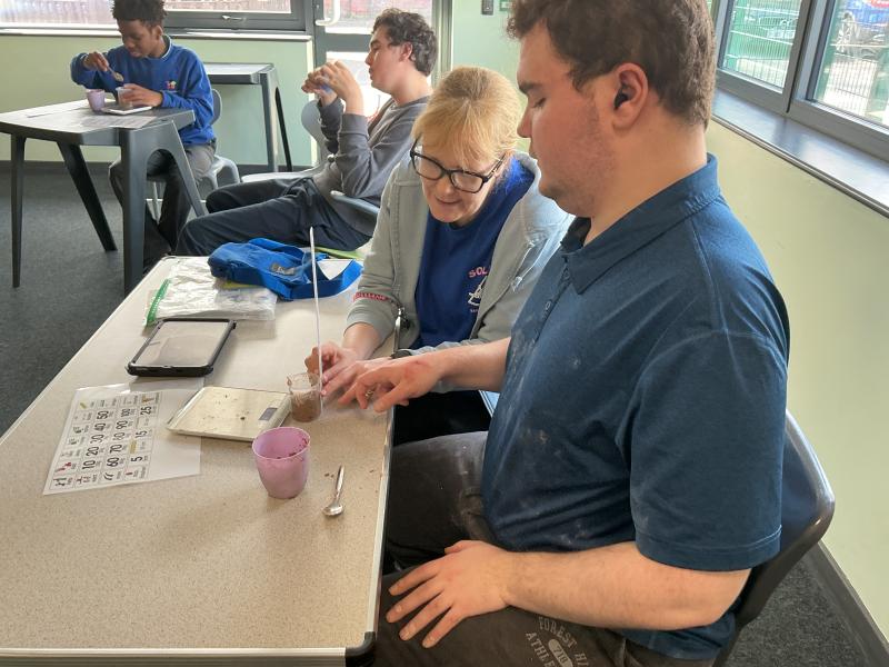 Some pupils have then been challenged to use a ruler to measure how high the amount of sand fills the container in centimetres.