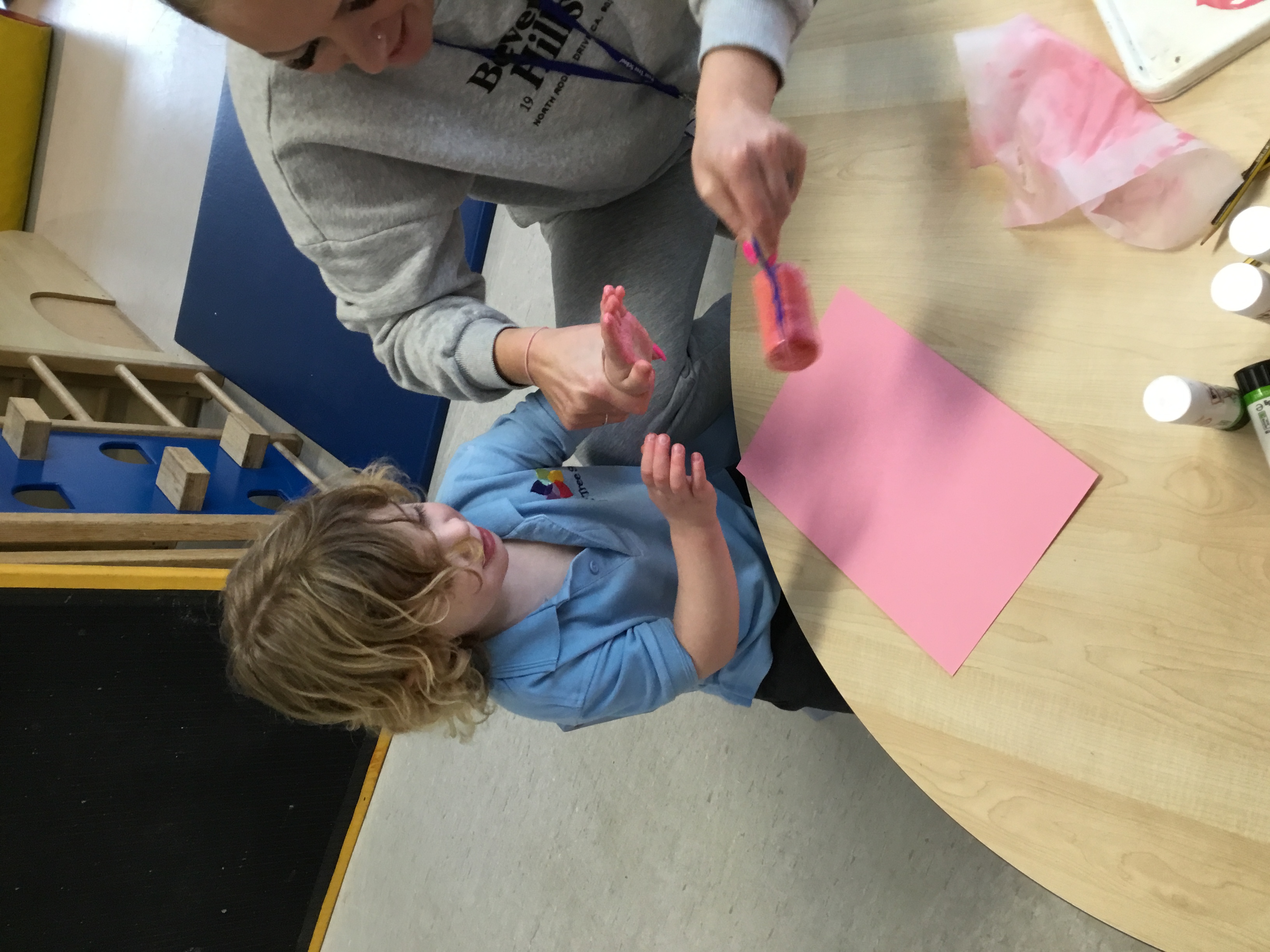 This week, Seedlings have been making hand print flowers for Valentine’s Day and red tissue paper to decorate a small flower pot.