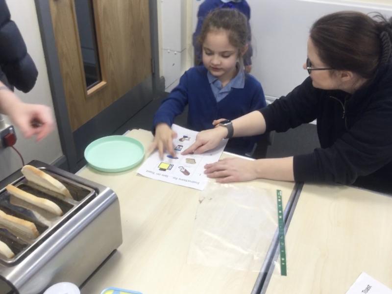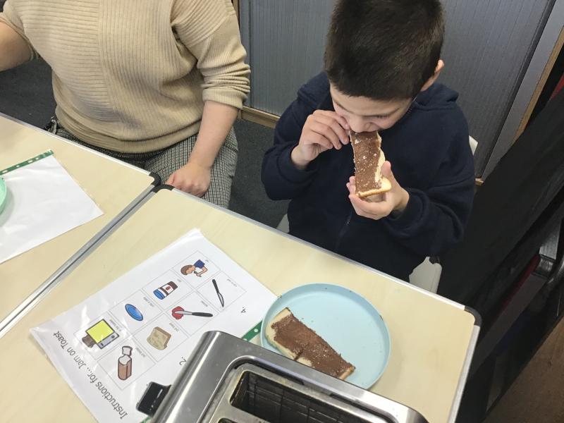 After that, it was our turn to get to work and follow some instructions of our own. Some of us created our own colourful rainbows and added clouds to finish the picture. Others programmed Bee-Bots to travel around a track by following step-by-step directions. The final group followed a sequence of instructions to make delicious toast with either jam or chocolate spread. It was a tasty treat, and the classroom smelled amazing!