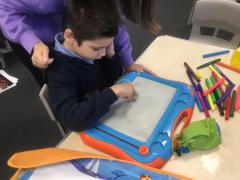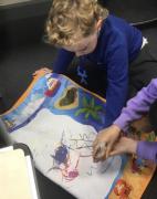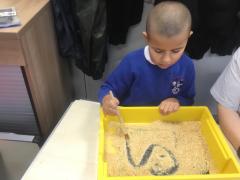 This week in Literacy, our focus has been on creative writing and mark making. The children have been trying a range of different activities to develop their early writing skills, including painting in sand, using 'sea water' on doodle mats, and even making patterns in 'snail slime” (hair gel). We've also had lots of practice with good old-fashioned pens and paper!