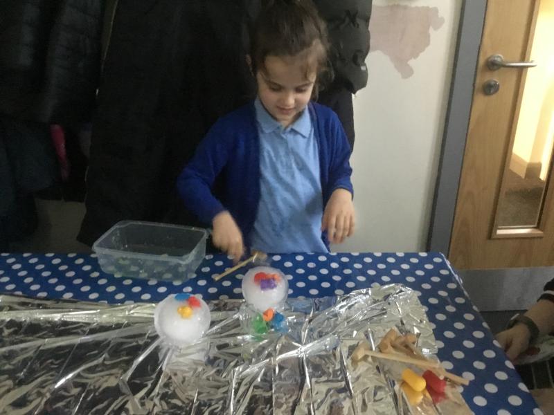 The highlight of the week was Inspiration Day last Friday, when a life-sized alien came to visit us in class. We couldn’t believe our eyes! We then spent the morning enjoying lots of sensory play, including glittery salt dough, moon sand and even rescuing animals trapped in ice.