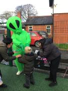Our focus text this half term is “There’s an Alien in Your Book,” which tells the tale of an alien whose spaceship crash-lands on Earth. We’ve loved getting to know the story and exploring a range of sensory props to bring it to life, from alien slime to rockets, parachutes, and of course, a very friendly monster!