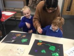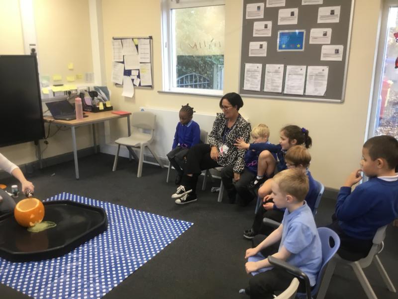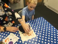 This week in Rowan Tree we’ve been having lots of seasonal fun in topic time with some very spooky craft activities. We’ve all been captivated by the poorly pumpkin in our attention autism session. Then we watched as bats appeared in flour and spooky ghosts appeared in water. Afterwards we got busy exploring seasonal vegetables, making bubble cauldron paintings, woolly spiders and splat monsters. We’ve also been practising our fine motor skills by decorating biscuits with icing and writing in flour.
