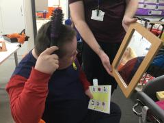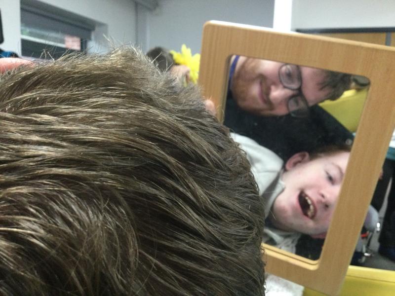 Meanwhile another group had a lovely sensory session exploring various different things, froms jobs such as hairdressing and working in a florists; and they also practiced using their biggest smiles.