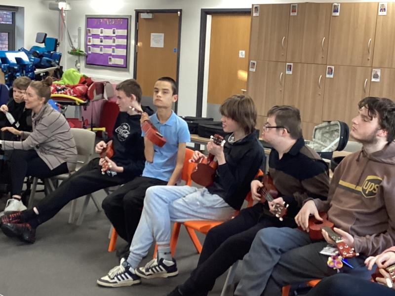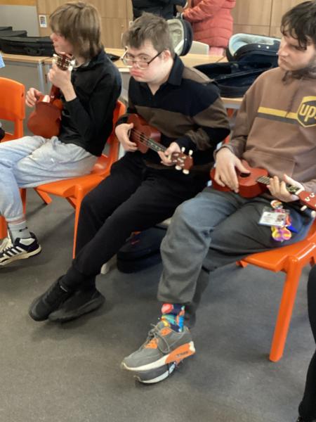 Sixth Form: Sixth form does ukulele with Neil