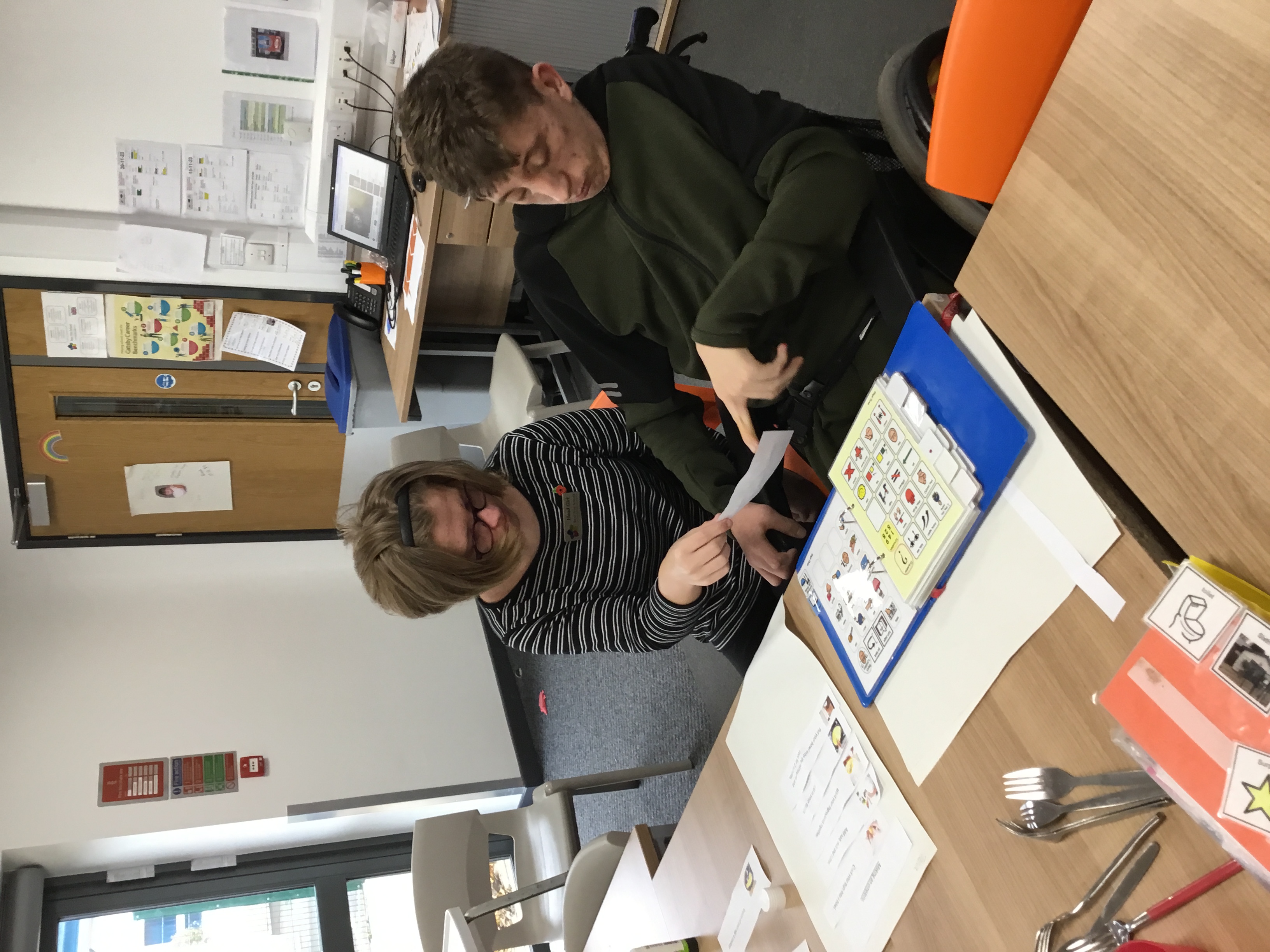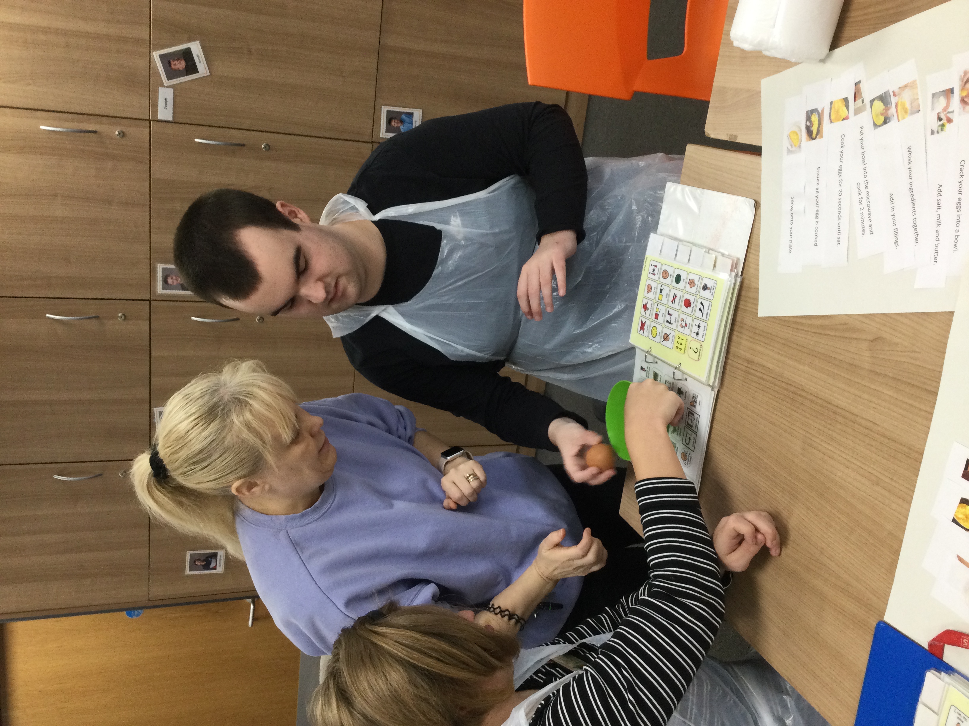 His week in our independent living skills the students have been making scrambled eggs independently. Before we started cooking, we had to talk as a class at what ingredients we might of needed and also how to make them. We worked in pairs to cut up a set of instructions and put them in the correct order. We then independently made our own scrambled eggs.