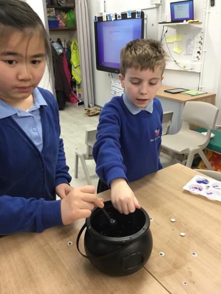 This half term our creative curriculum theme is Spellbound, this involves cackling to each other (very important), and so far doing some very witchy activities.