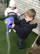 The watering cans were especially popular, with children watching closely as they filled up and emptied again. The ball bit encouraged lots of movement and playful experimenting, while the sand trays offered a calmer, more grounding experience for those who prefer it.