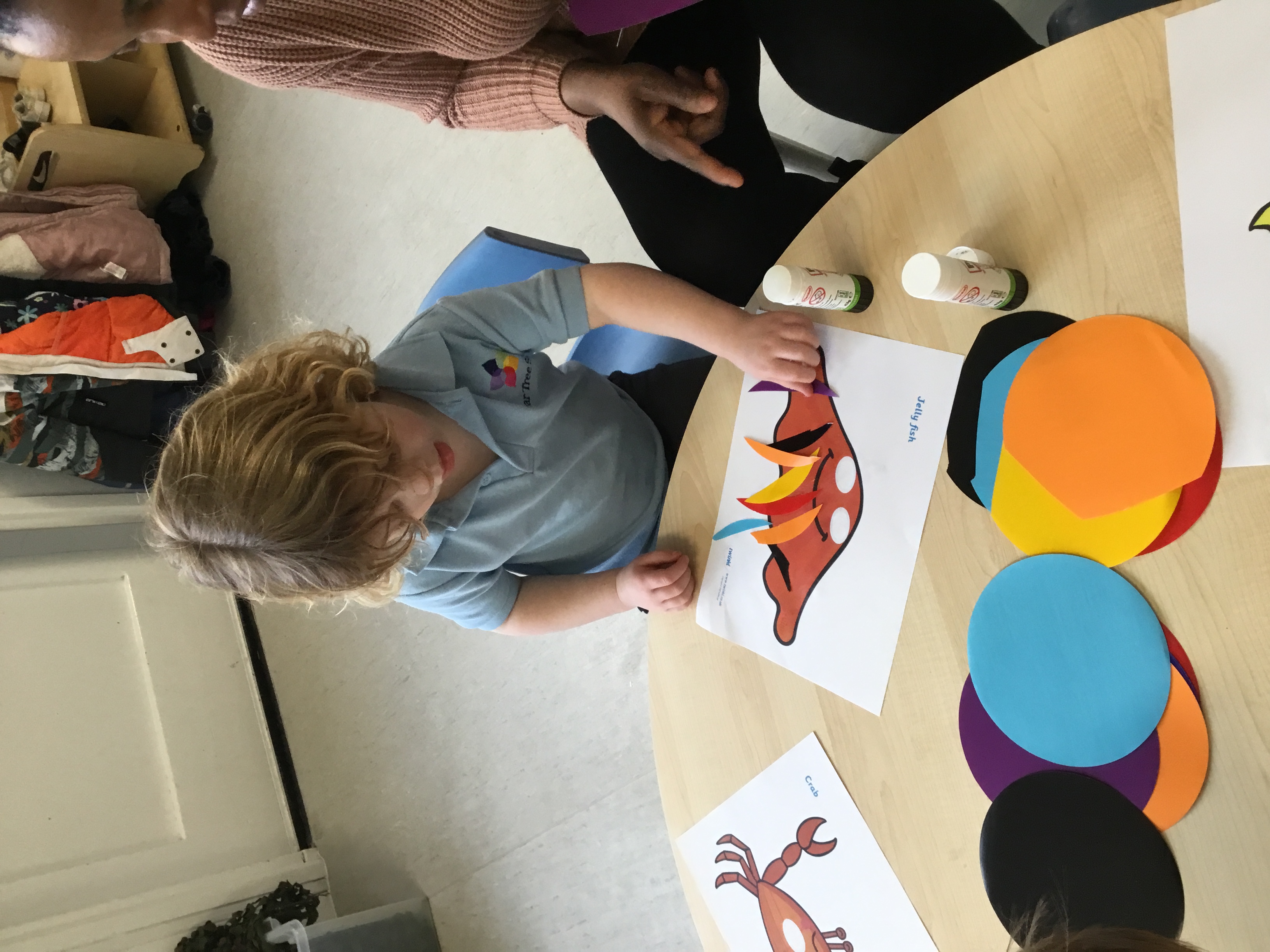 This week Seedlings have been making sea creatures; we have made fishes and decorated them with tissue paper and octopus biscuits.